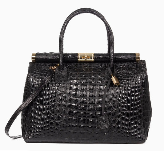 Anacapri Womens Tote Bag. Genuine Leather Suede Engraved Black