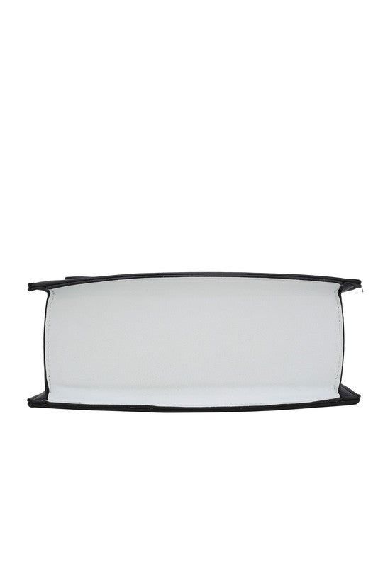 Crafted from smooth high-quality vegan leather with a color-block finish and designed with gold-tone embellishments. Your belongings will be safe with a push-lock fastening and zipper closure. Opens it to reveal a surprisingly spacious lined interior worth of essentials. The exterior features a convenient back zip pocket. The bag goes from day to night with ease, thanks to a removable and adjustable shoulder strap and top handle for varied carrying options. It comes with an accent keychain.