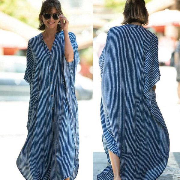 Hot & trendy button-down dress with pockets. Wear it with a belt, or at the beach over your bathing suit. One size. Length 135cm/53in, Shoulder width: 89cm/35in, Bust: 130cm/51in (button adjustable).